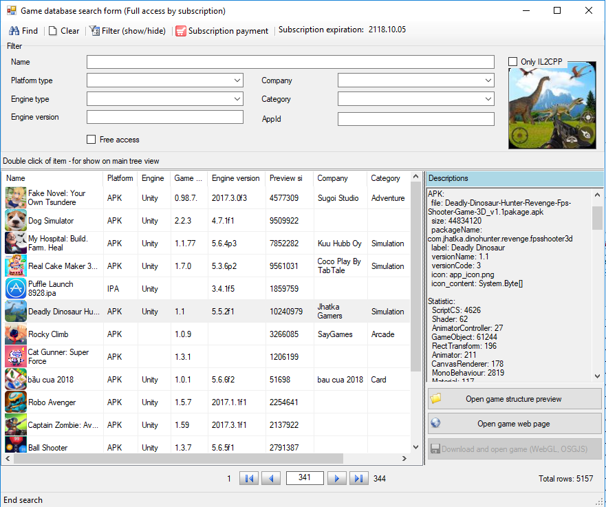 It allows you to search for games according to the type of game used by the game engine as well as preview the contents of the game (resource tree)